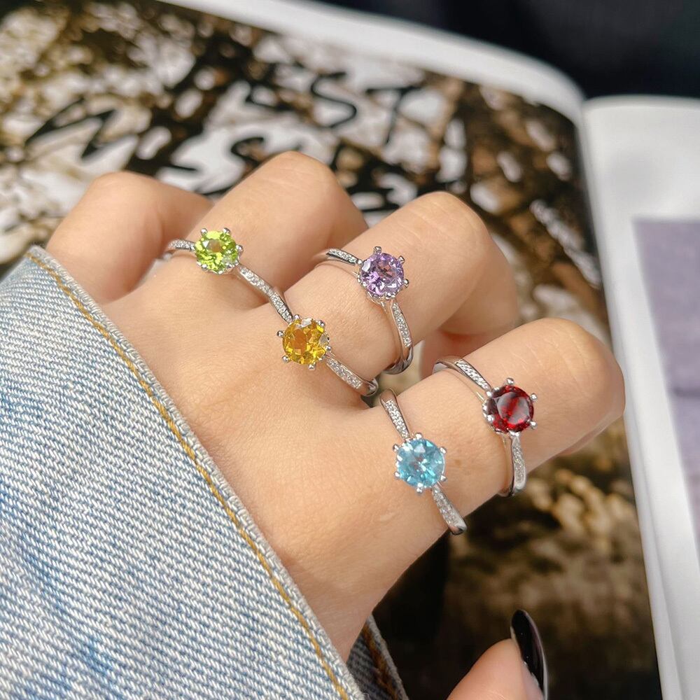 【S925刻印あり 純銀製宝石リング(丸型)】【天然石ルース使用】 選べる5種類 爪止め サイズ調整可能 フリーサイズ 可愛い 純銀リング Silver 925シルバー 宝石 指輪 シンプル 丸型 ストーン プレゼント 婚約指輪 女性用 ジュエリーギフト 結婚式シーズン ジュエリー記念日 誕生石