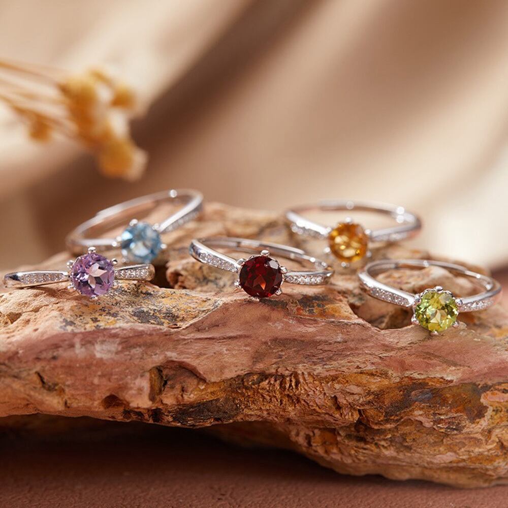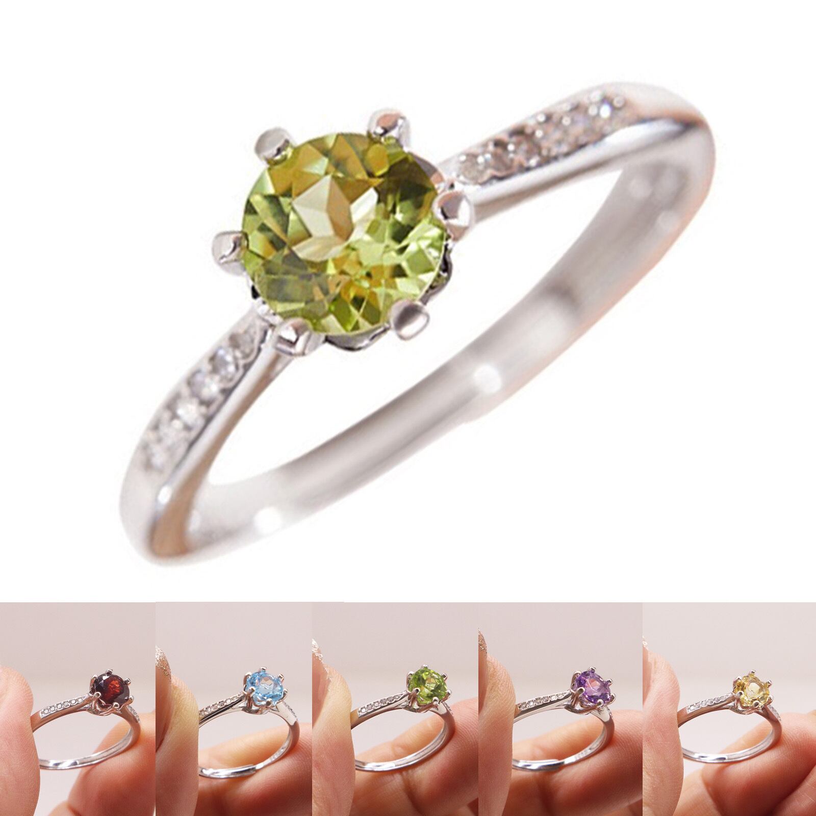 【S925刻印あり 純銀製宝石リング(丸型)】【天然石ルース使用】 選べる5種類 爪止め サイズ調整可能 フリーサイズ 可愛い 純銀リング Silver 925シルバー 宝石 指輪 シンプル 丸型 ストーン プレゼント 婚約指輪 女性用 ジュエリーギフト 結婚式シーズン ジュエリー記念日 誕生石 自社製保証書付き
