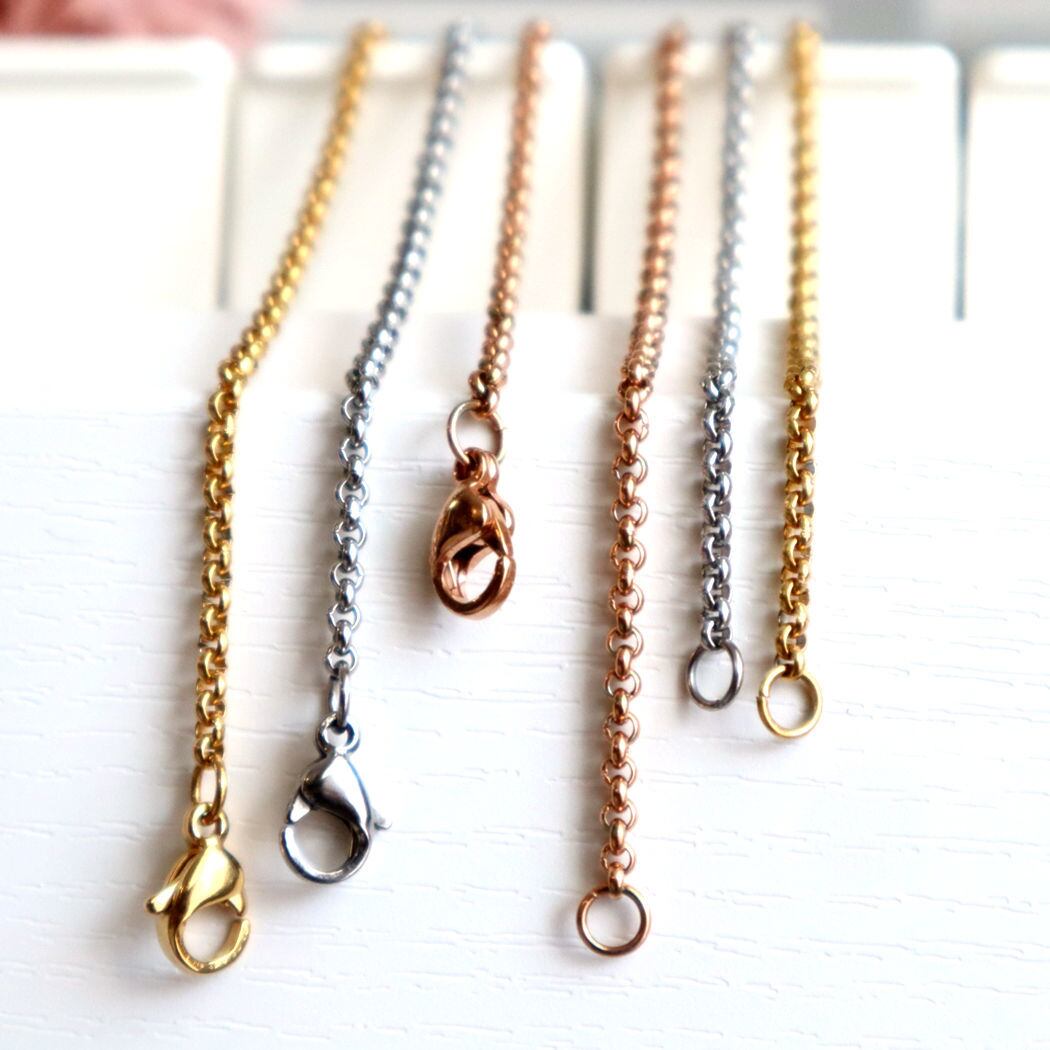 選べる3色、幅2㎜(細め)ツヤあり、サイズ充実!サージカルステンレスあずきリングネックレスチェーン