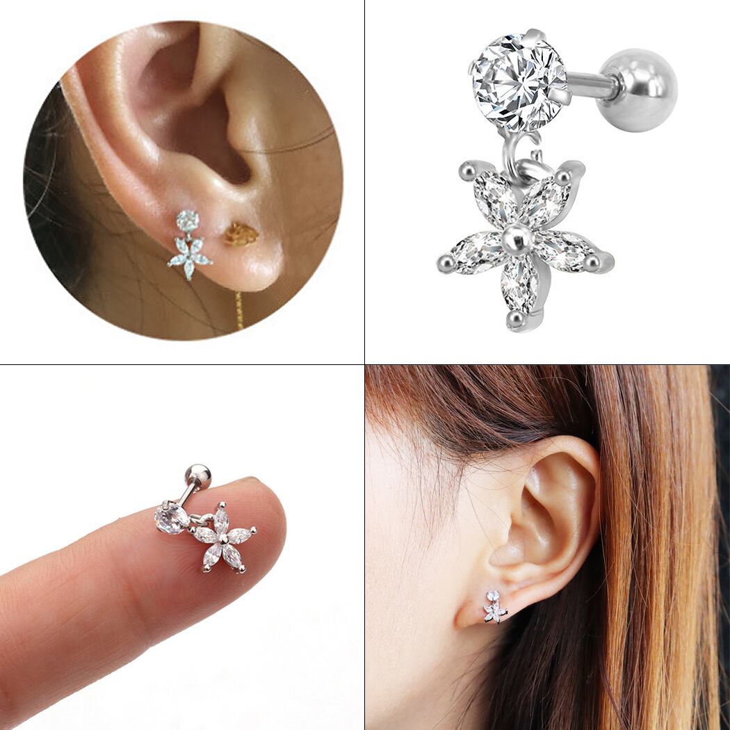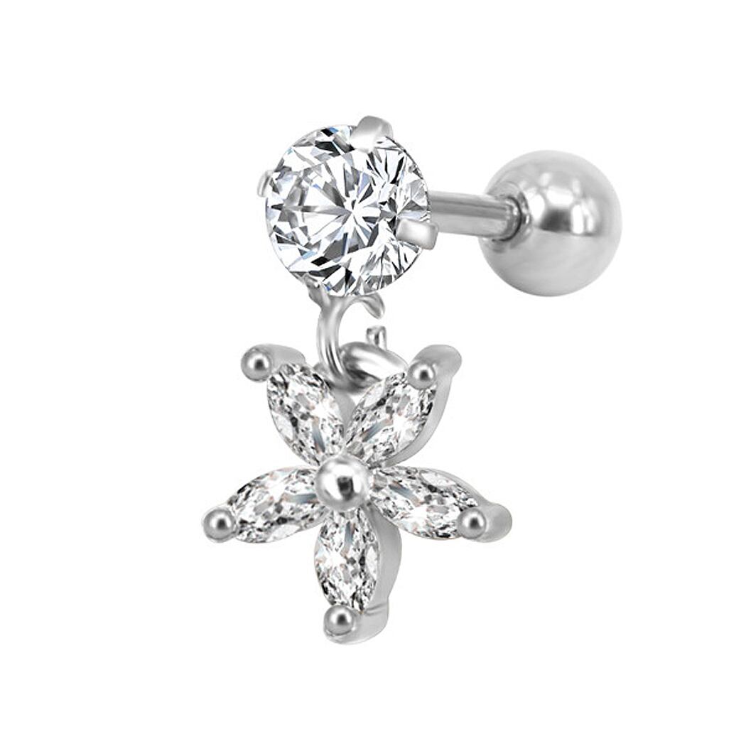 ボディピアス レディース お花 ボール ピアス 耳 軟骨用 トラガス ジルコニア 体のピアス シルバー サージカルステンレス製 低アレルギー性