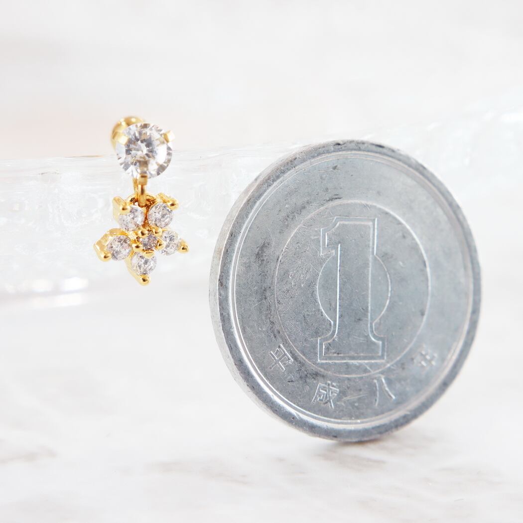【ステンレス高質ジルコニア】ボディピアス 花 ハワイアンジュエリー キャッチ おしゃれ パーツ かわいい ダブルフェイス ストレートバーベル 軟骨ピアス