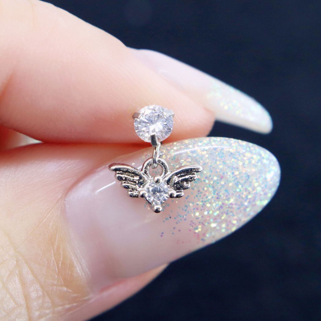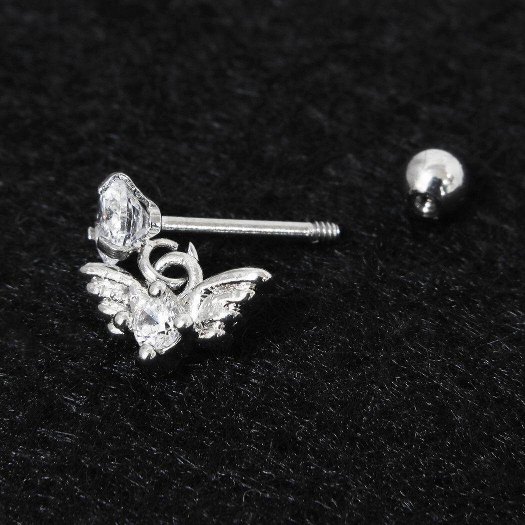 ピアス シルバー 翼 羽 ウイング エンジェル ストレートバーベル ボディピアス 軟骨ピアス ステンレス