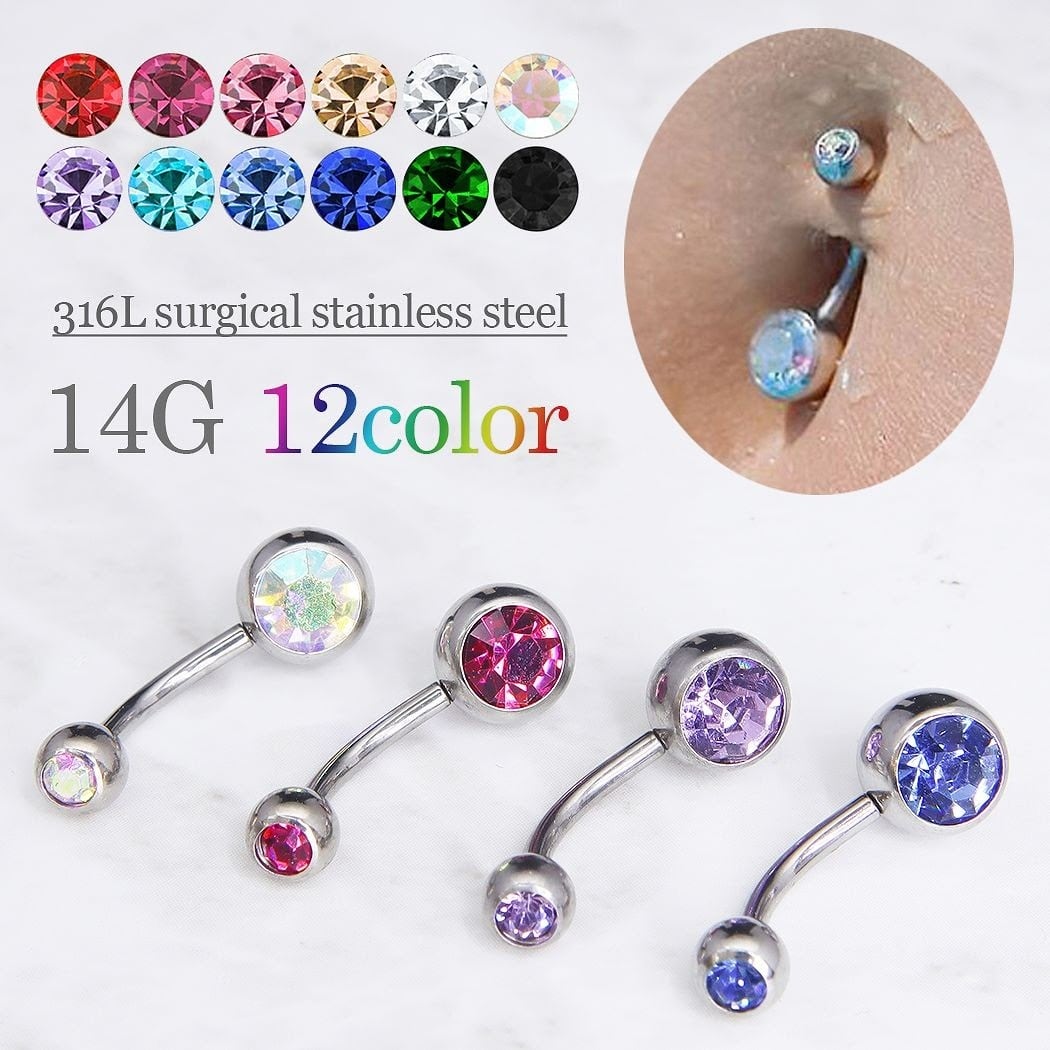 へそピアス ボディピアス バナナバーベル ジルコニア へそピ ジルコニア 14G