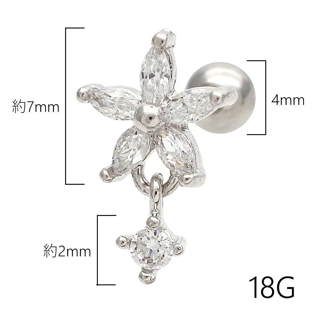 フラワー ボディピアス 揺れる 花 ステンレス ジルコニア 軟骨 18G 片耳