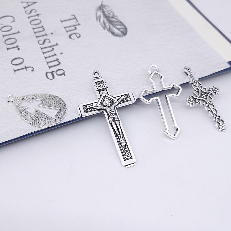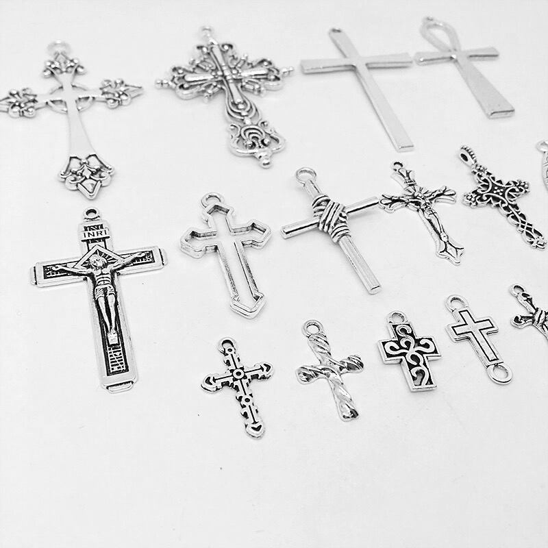 クロスチャーム 十字架 シルバー カン付き アクセサリーパーツ アクセサリートップ ハンドメイド MIX アソート 45gセット 18個セット