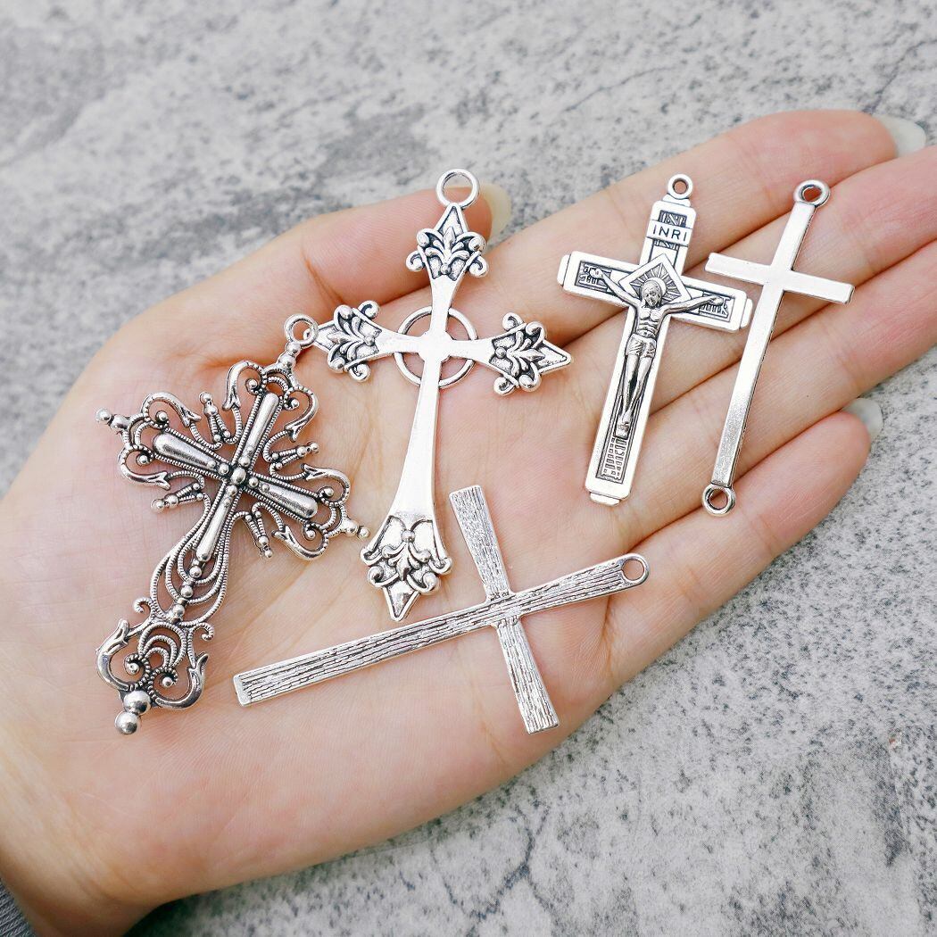 シルバーカラーのクロスモチーフを集めたチャームセットです。