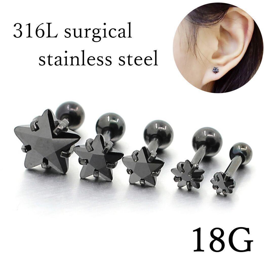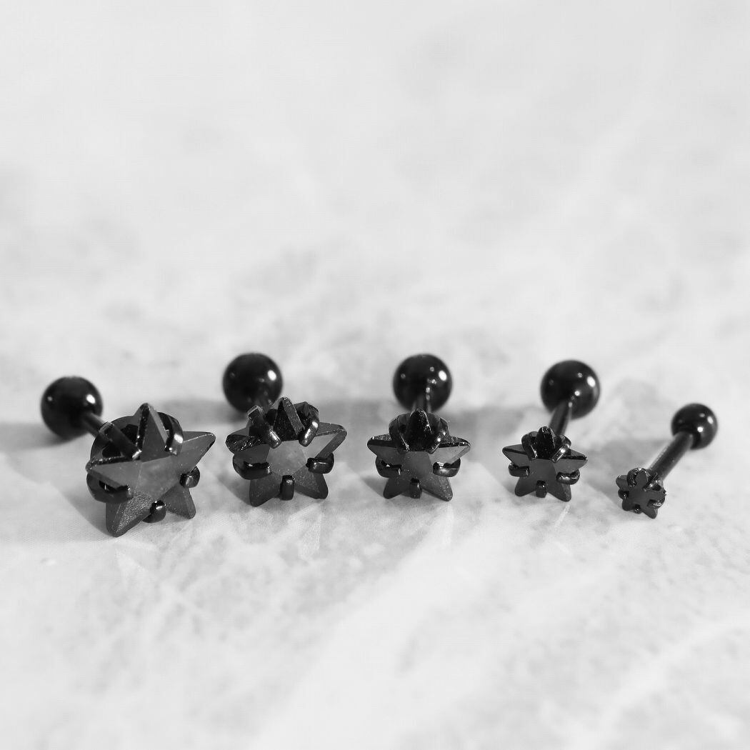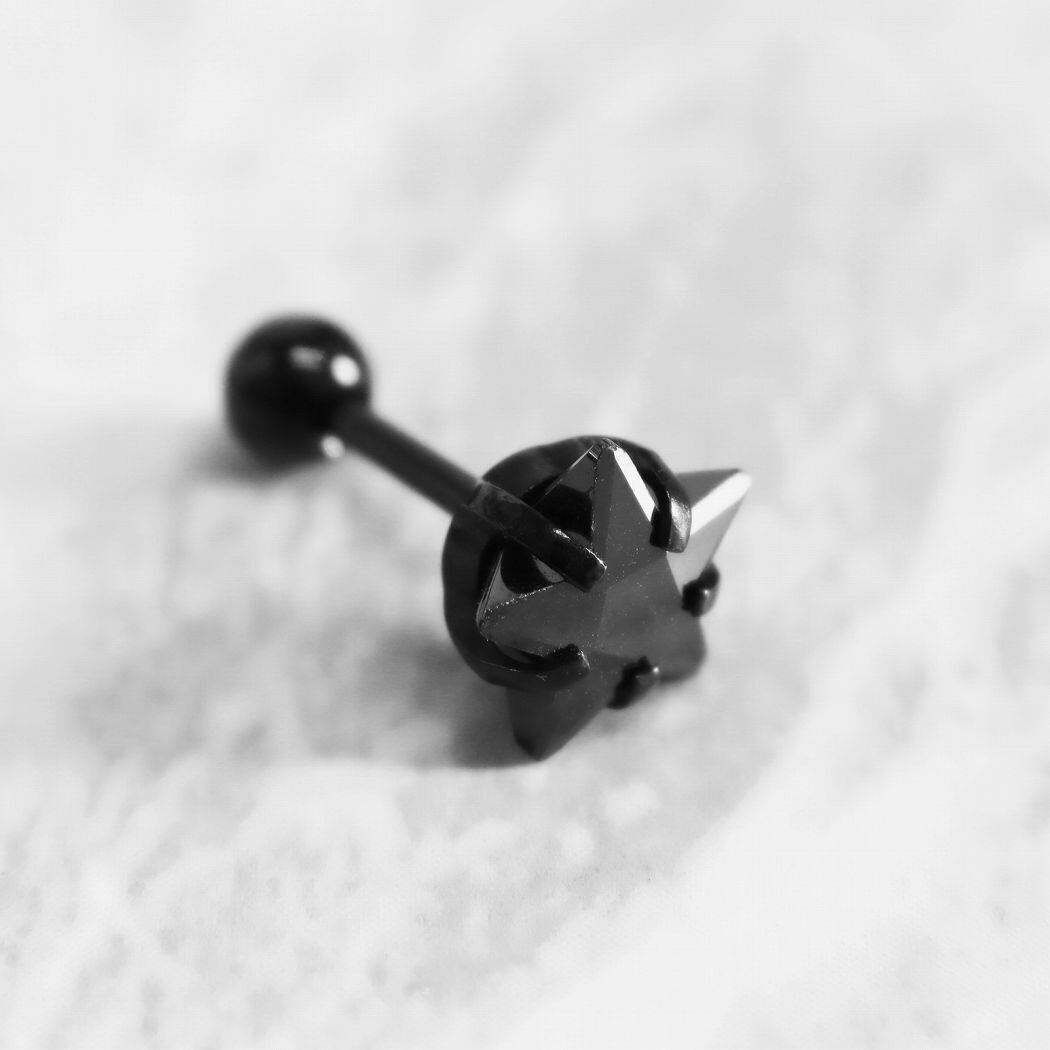 ステンレス オールブラック スター 星 ボディピアス ストレートバーベル 軟骨ピアス ステンレス