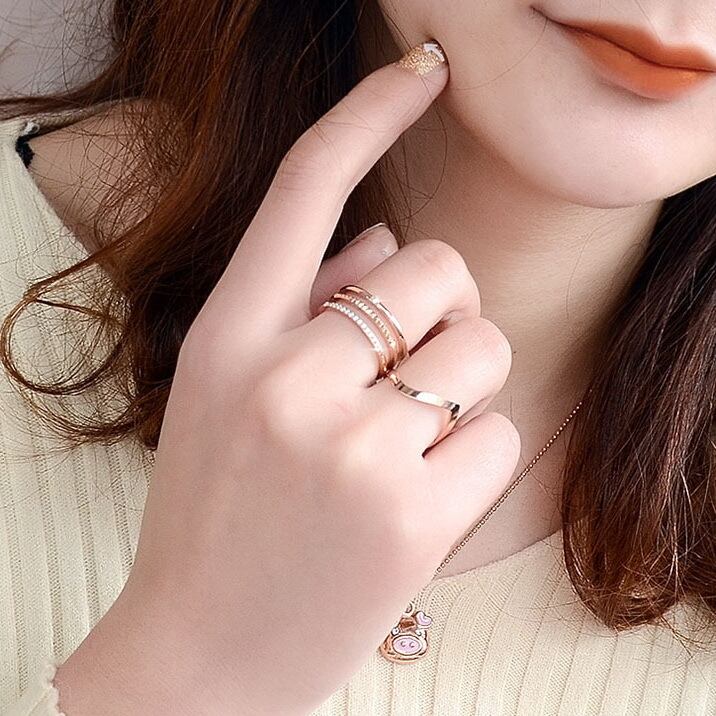 3連デザインリング 指輪 ジルコニア 三連 重ね付け ステンレス アレルギー対応