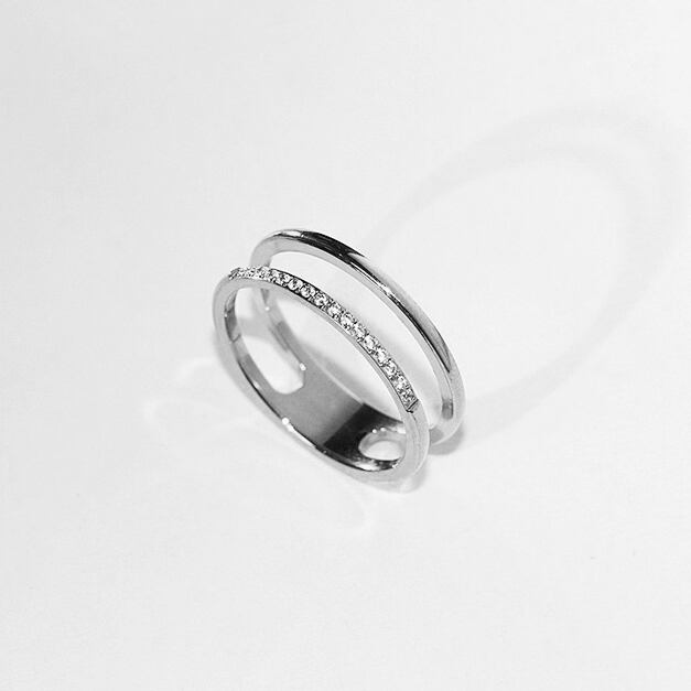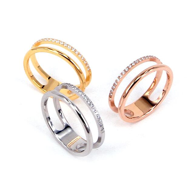 リング 指輪 ジルコニア ダブル 2連 二連 重ね付け ステンレス アレルギー対応