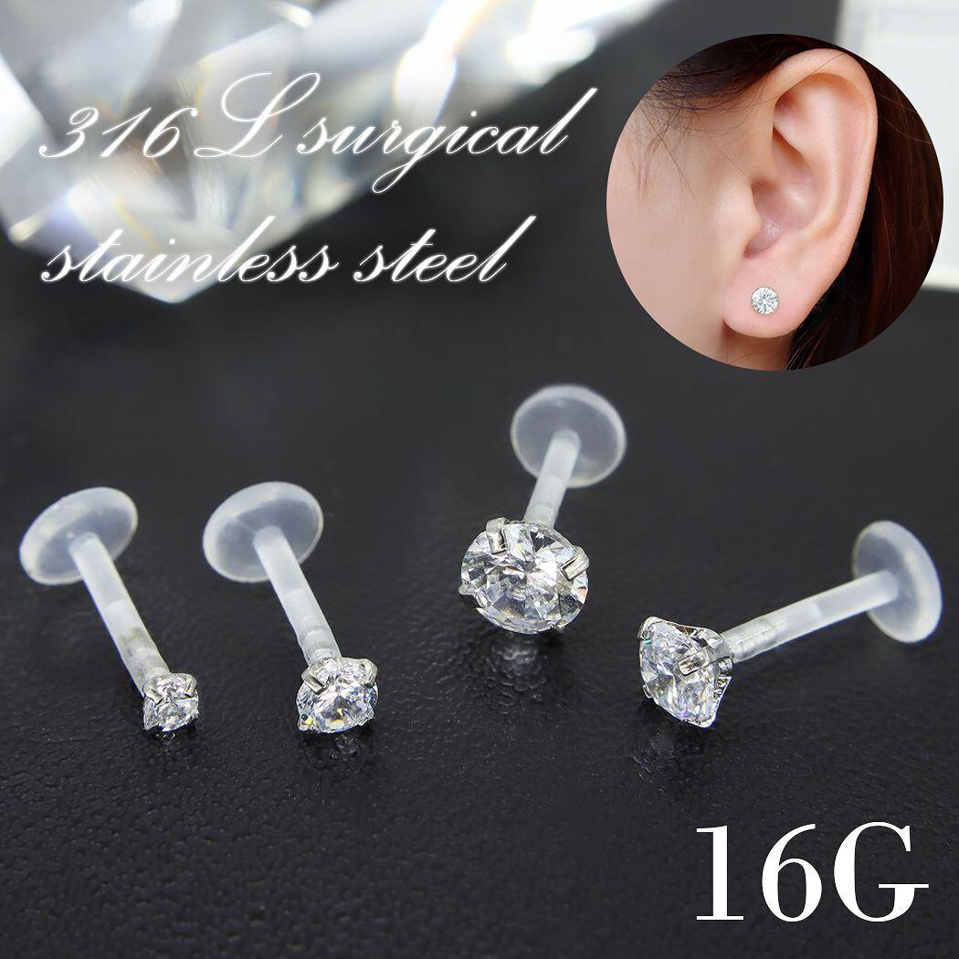 シリコン ジルコニア ラブレット プッシュピンピアス ボディピアス インターナル 耳 軟骨