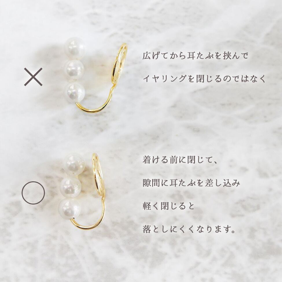 着ける前にイヤリングを少し閉じて、