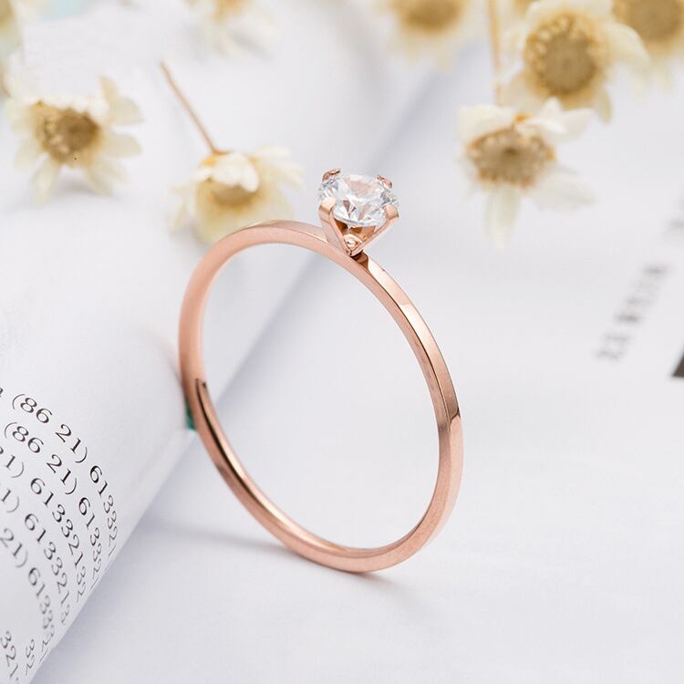 ステンレス 極細 立体ジルコニアリング ピンキーリング 指輪 華奢 一粒 ワンポイント ストーン 幅0.9mm
