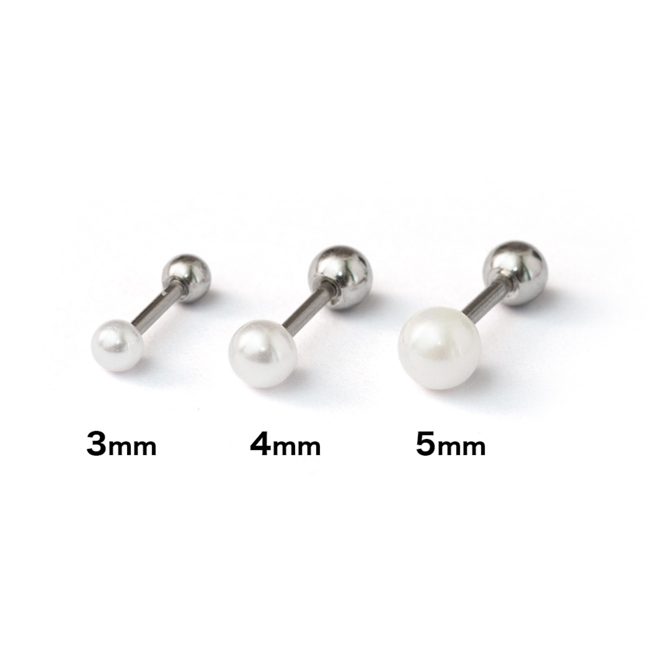 選べるサイズ 3/4/5㎜上品な天然淡水パール アレルギー防止ステンレスピアス 片耳