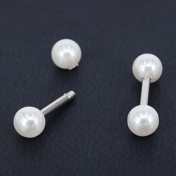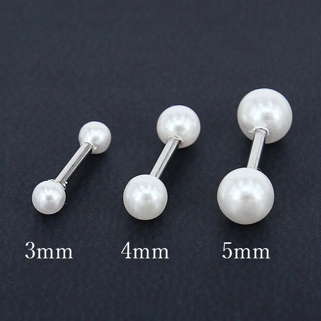 パール ボディピアス ストレートバーベル ステンレス 18G 20G 3mm 4mm 5mm 片耳 シンプル ネジ式 軟骨ピアス イヤーロブ ヘリックス