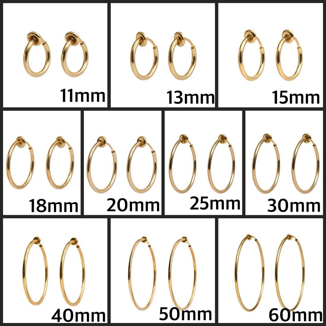 お買い得!日本製 小顔演出、定番のフープイヤリング レディース 両耳選べる2色 10サイズ