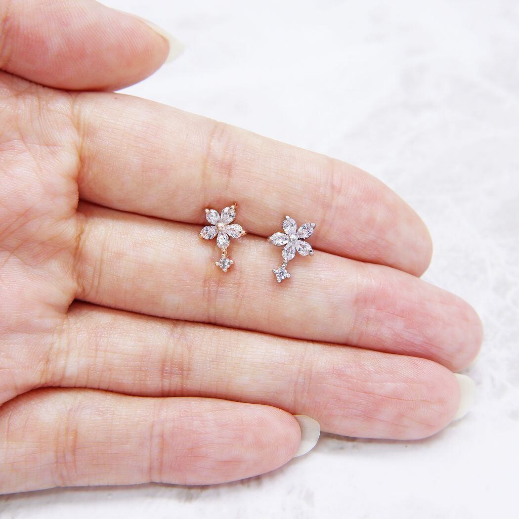 小ぶりで可愛いお花モチーフの下には一粒ジルコニア付き♪