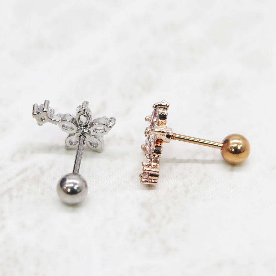 フラワー ボディピアス 花 ステンレス ジルコニア 軟骨 20G 片耳 ストレートバーベル ネジ式 耳たぶ 軟骨 イヤーロブ ヘリックス トラガス 上品 可愛い