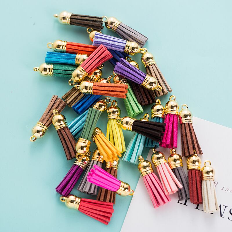 カン付き タッセル チャーム スエード スウェード ゴールド 37mm アクセサリーパーツ キーリング ストラップ ハンドメイド DIY 手芸 装飾 素材 材料 6個