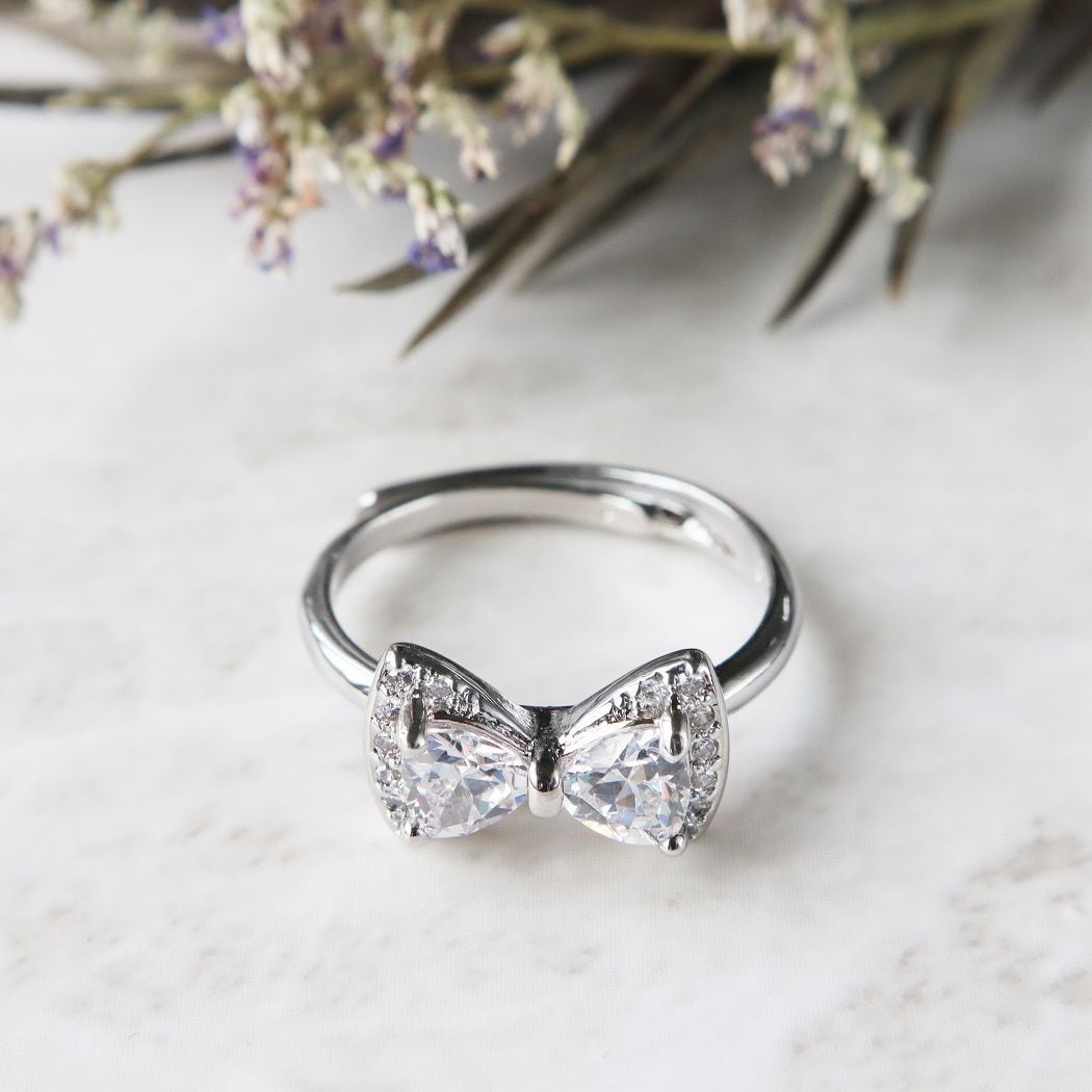 S925 りぼん リボン リング 指輪 フリーサイズ レディース ジルコニア ストーン レディース 金属アレルギー対応