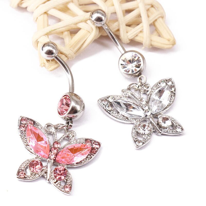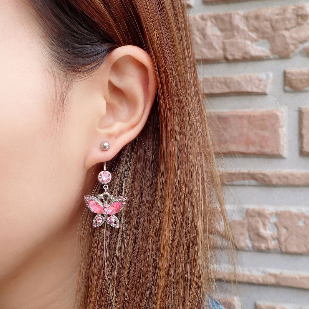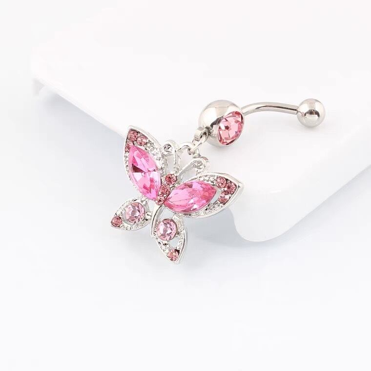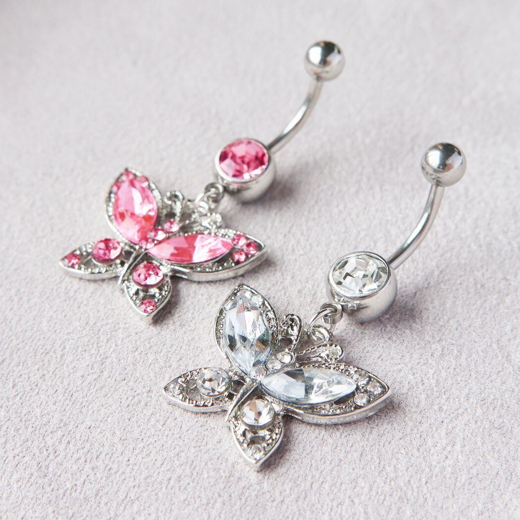 人気の蝶モチーフをあしらったへそピアスです。