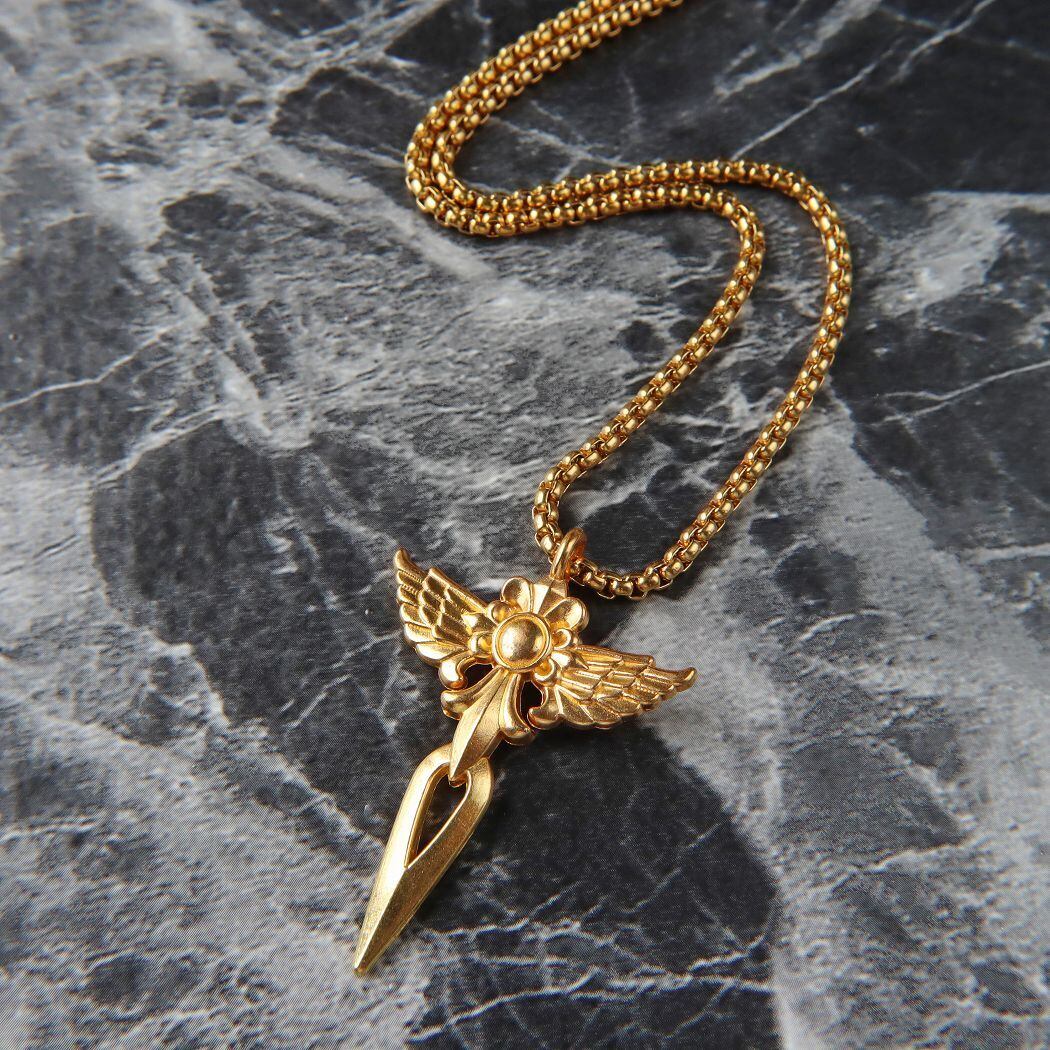 羽クロスネックレス 翼 十字架 剣 大きめ サージカルステンレス 金属アレルギー対応