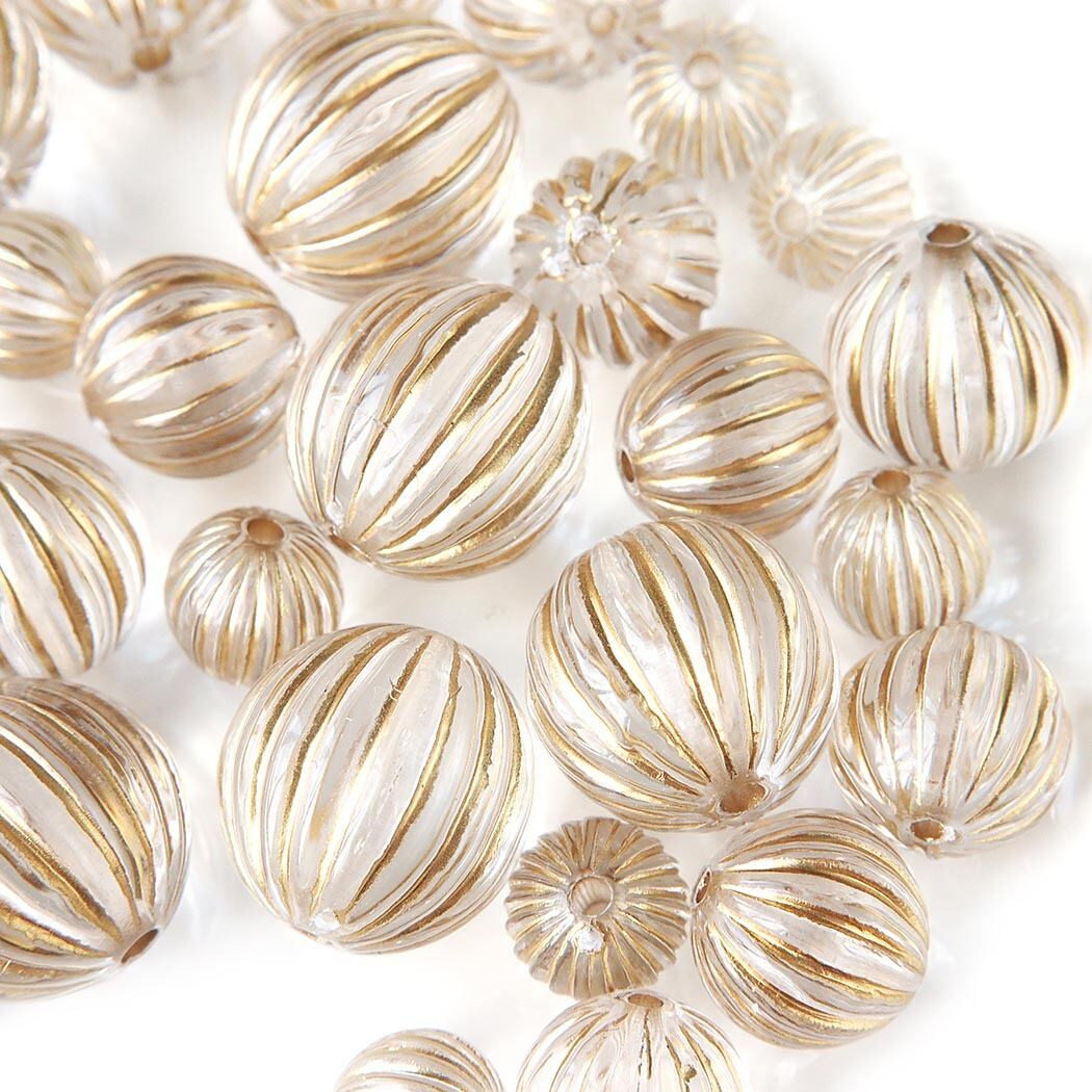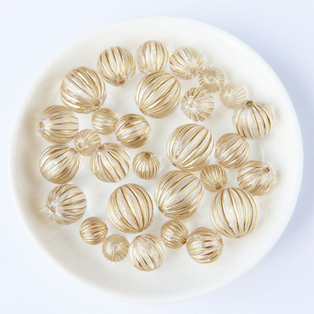 アクリルビーズ クリア 透明 ゴールドライン アンティーク エスニック レトロ ハンドメイド パーツ 手芸 素材 材料 樹脂 プラスチック 丸玉 ボール 穴あり 通し穴