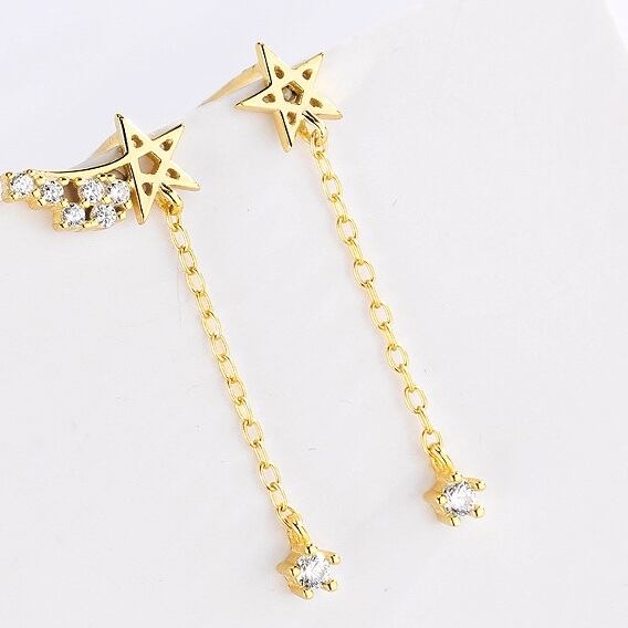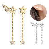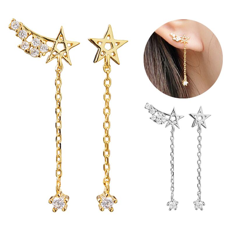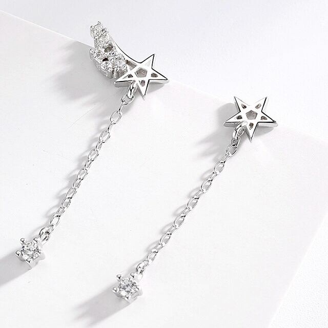 星 スター ピアス チェーン S925 揺れる ドロップ ジルコニア 小さめ 金属アレルギー対応 左右非対称 アシンメトリー
