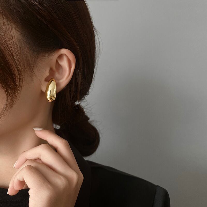 光沢がきれいな大ぶりのしずくモチーフのイヤーカフ。