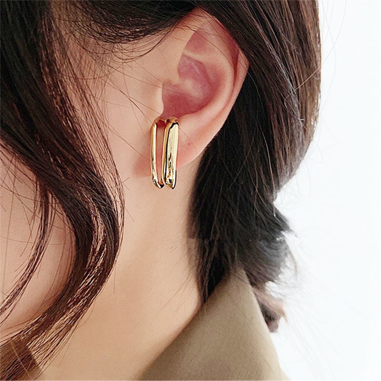 ダブルライン イヤーカフ イヤリング シンプル 大ぶり ウェアリング ノンホール フェイクピアス レディース 片耳1個