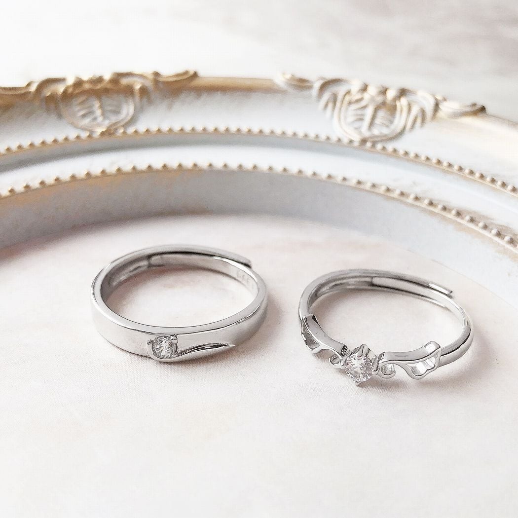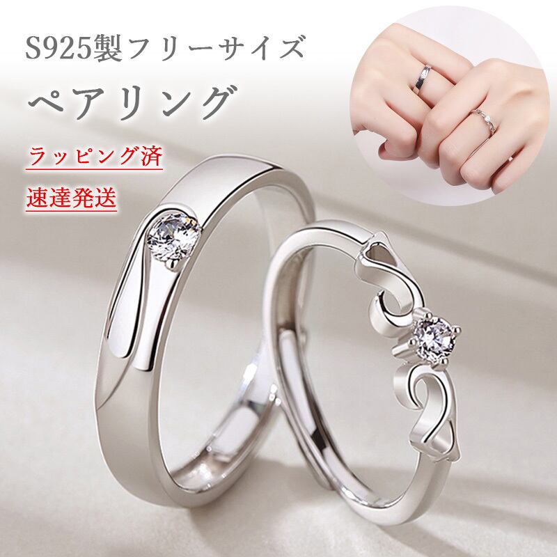 ペアリング フリーサイズ S925 プラチナメッキ 天使 羽 翼 エンジェル 一粒 ジルコニア ストーン マリッジ エンゲージ 婚約指輪 結婚指輪 レディース メンズ 金属アレルギー対応 ラッピング付き 速達発送