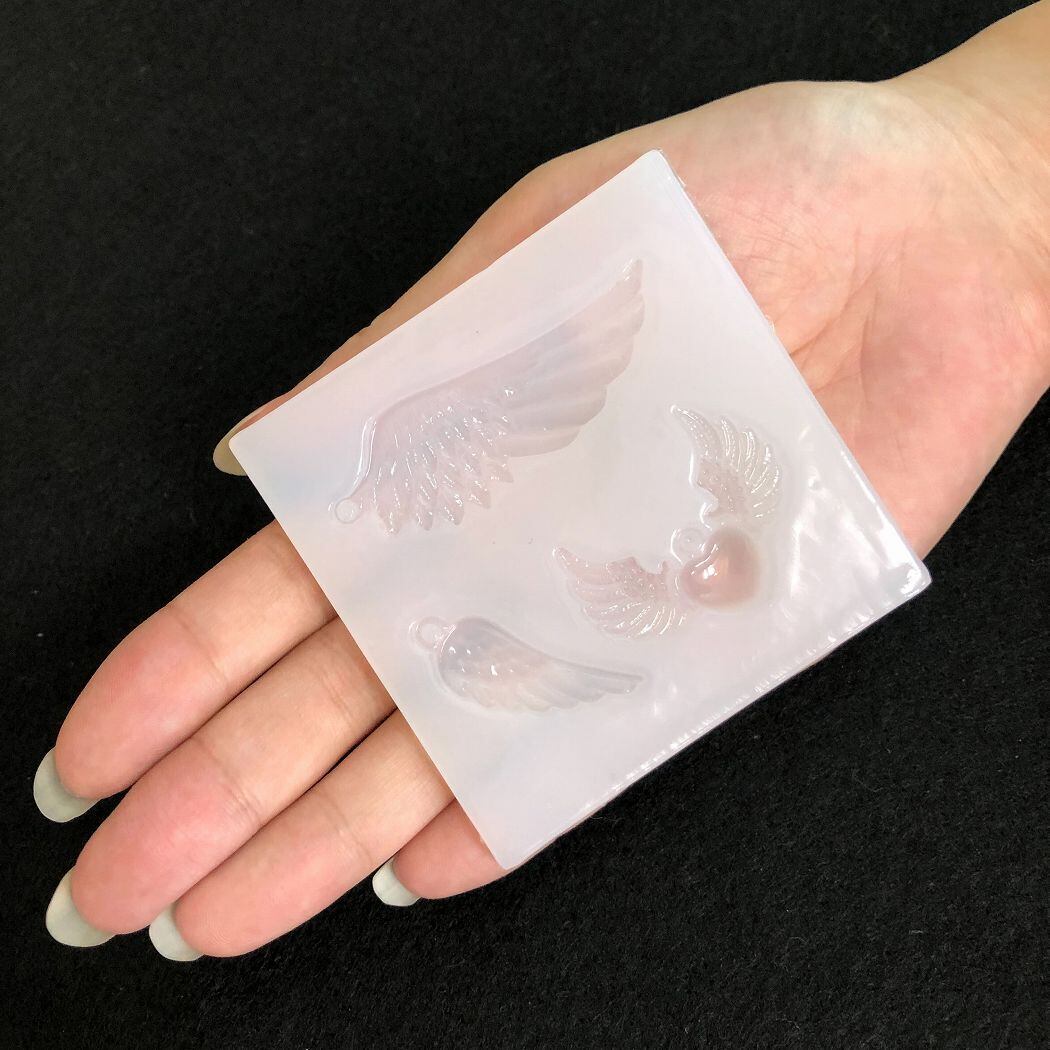 レジン型 ソフトモールド シリコンモールド カン穴付き 羽 羽根 翼 天使 ウイング アクセサリーパーツ キーホルダー オーナメント UVレジン エポキシ樹脂 粘土 ハンドメイド