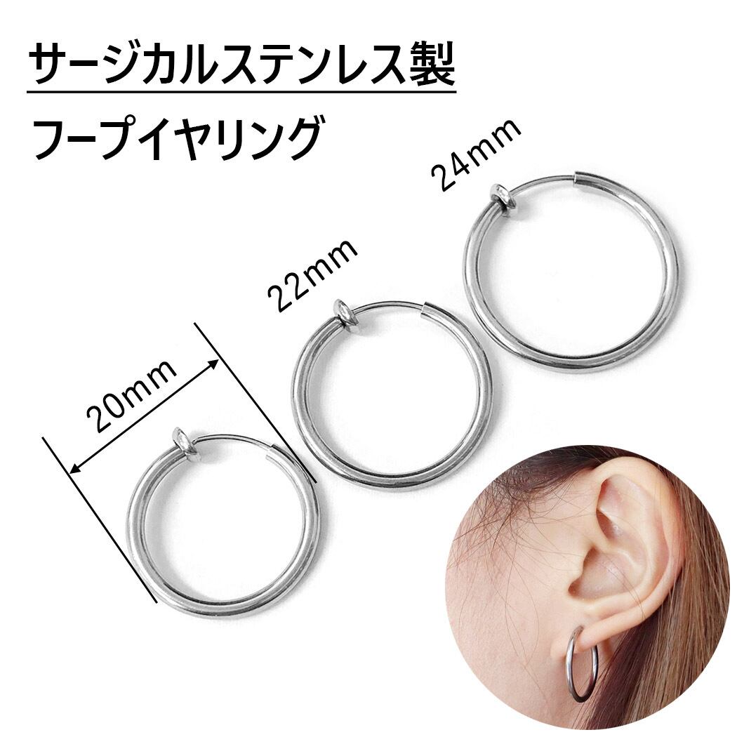 高品質 サージカルステンレス フープイヤリング フェイクピアス シルバー メンズ レディース 金属アレルギー対応 20mm 22mm 24mm 片耳