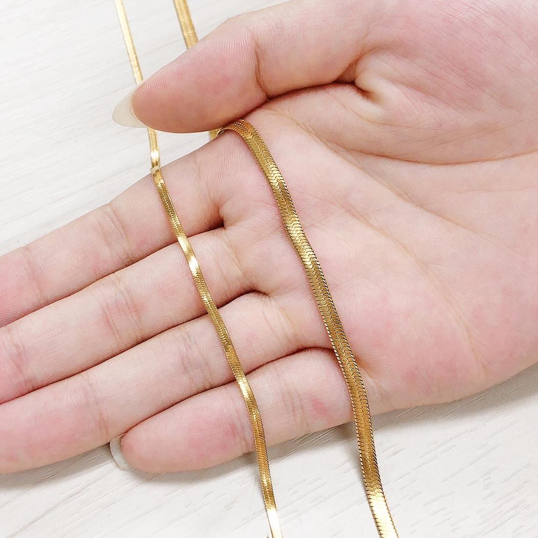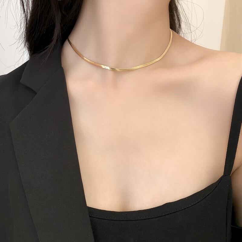 サージカルステンレス チョーカー ネックレス スネークチェーン フラット 2mm 3mm ゴールド シンプル 金属アレルギー対応
