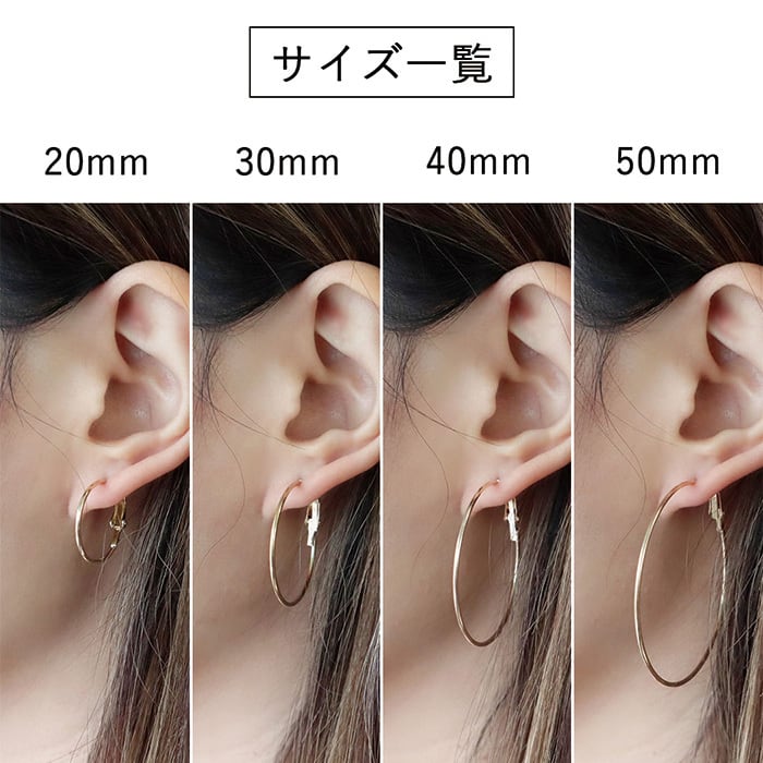 フープピアス ピアスパーツ バネ式 ハンドメイド ゴールド ラウンド 細い 華奢 金具 手芸 アクセサリーパーツ 20mm 30mm 40mm 50mm