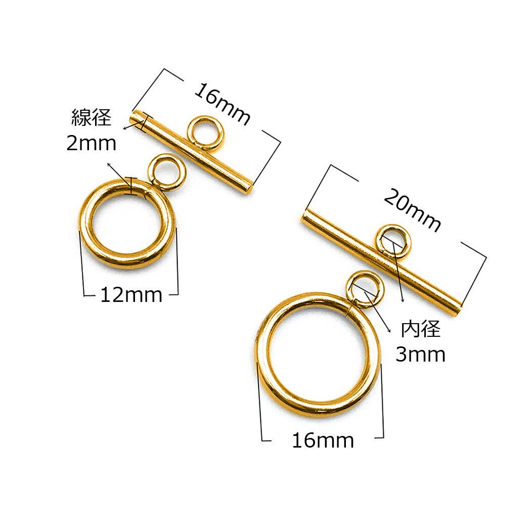 ステンレス マンテル 12mm 16mm 2セット ゴールド アクセサリーパーツ 留め具 トグル O字型クラスプ T字型クラスプ OT型クラスプ 金属アレルギー対応 手芸 ハンドメイド DIY クラフト 素材 材料