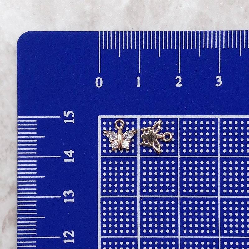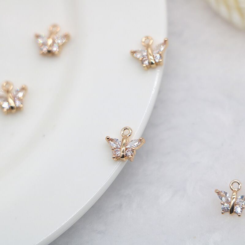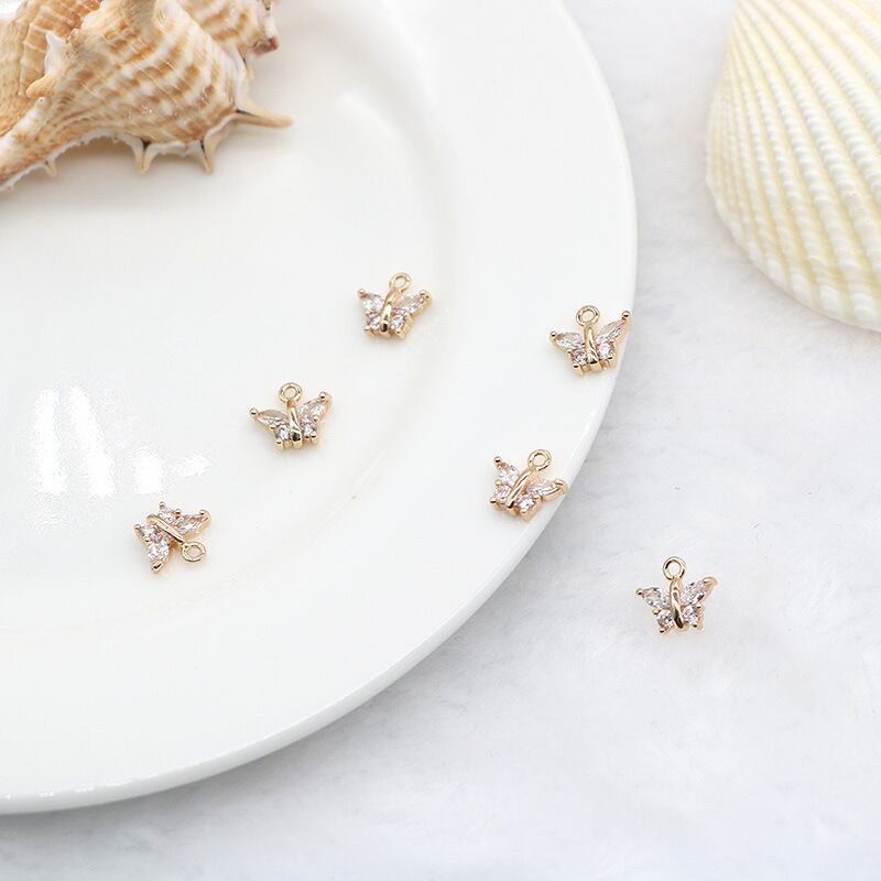 高品質 ジルコニア チャーム メタルチャーム カン付き アクセサリーパーツ ハンドメイド 素材 蝶々 バタフライ ミニサイズ ゴールド 2個