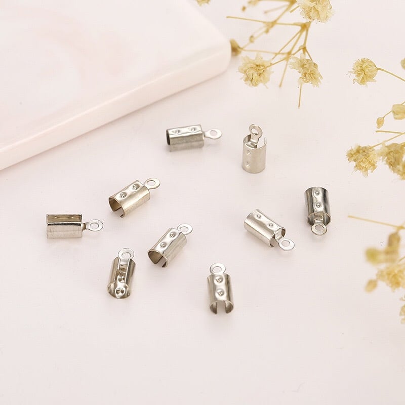 サージカルステンレス カシメ 紐留め カン付き アクセサリーパーツ エンドパーツ 接続パーツ ネックレス ブレスレット アンクレット シルバー 金具 手芸 素材 ハンドメイド レザークラフト