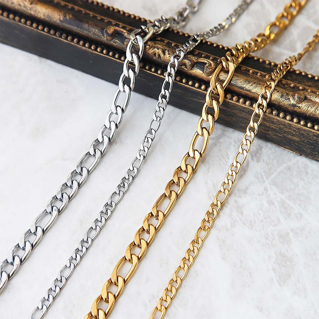 サージカルステンレス マンテル チェーンブレスレット フィガロチェーン 3mm 5mm メンズ レディース 金属アレルギー対応