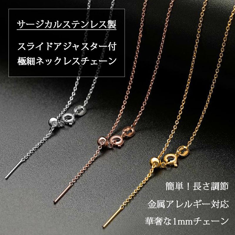 サージカルステンレス スライドアジャスター付き ネックレスチェーン あずきチェーン 極細 1mm 華奢 金属アレルギー対応 ハンドメイド 素材 パーツ