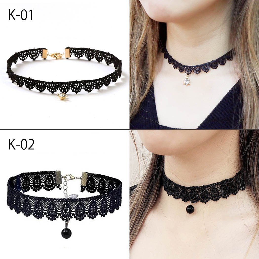 チョーカー レース ブラック ネックレス ペンダント レディース カジュアル ゴシック ジルコニア
