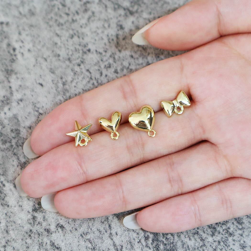 カン付き ピアスパーツ スタッドピアス アクセサリーパーツ ハンドメイド りぼん リボン 星 スター ハート ゴールド キャッチ付き 両耳 2個