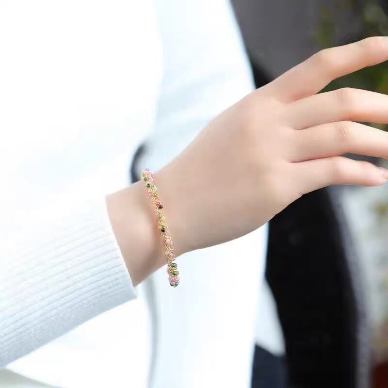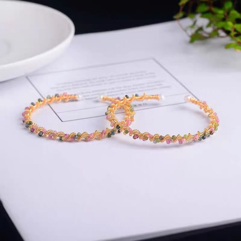 高質高透明天然石トルマリン2~2.5㎜ 天然淡水パールパワーストーン女性専用バングルブレスレット