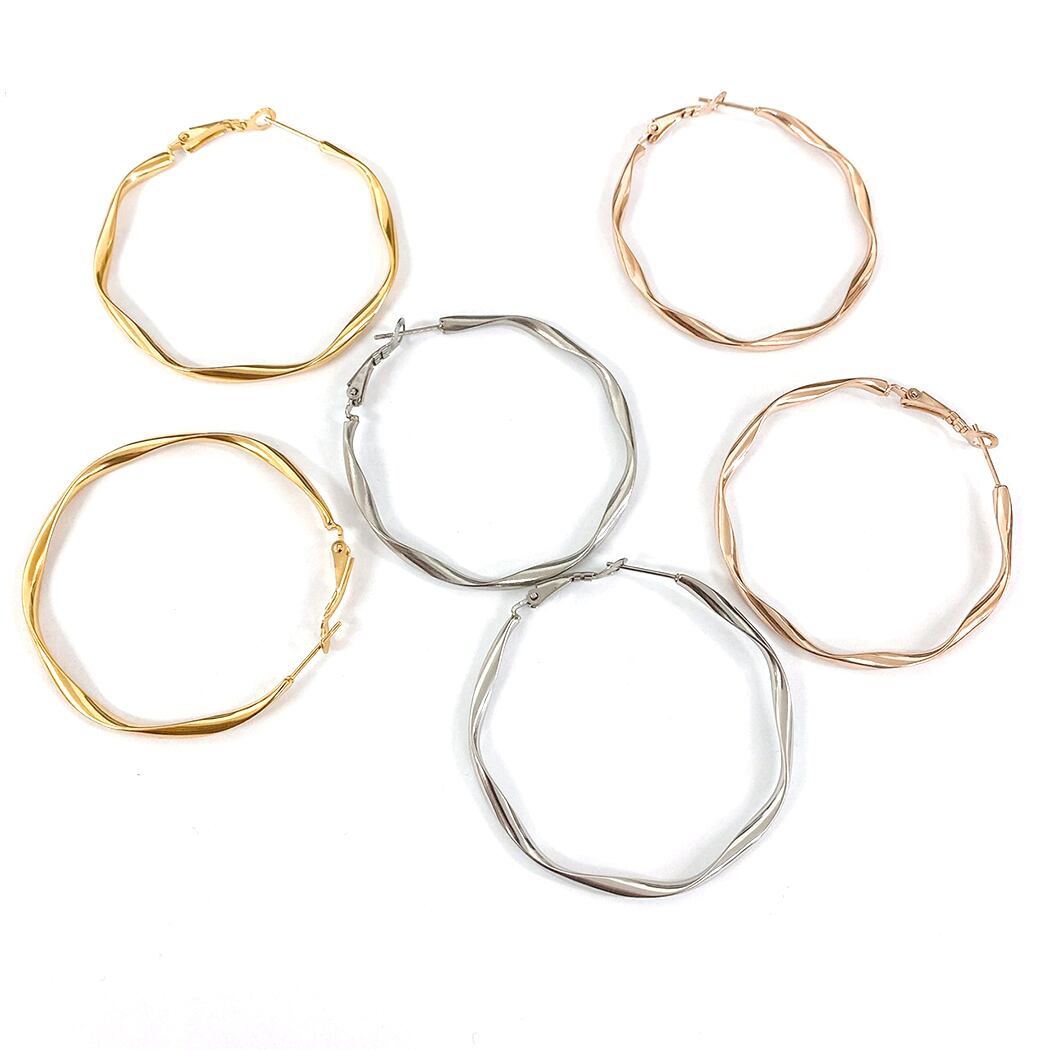 フープピアス ねじり ひねり ツイスト ステンレス シンプル 上品 大きめ アクセサリー 女性 両耳