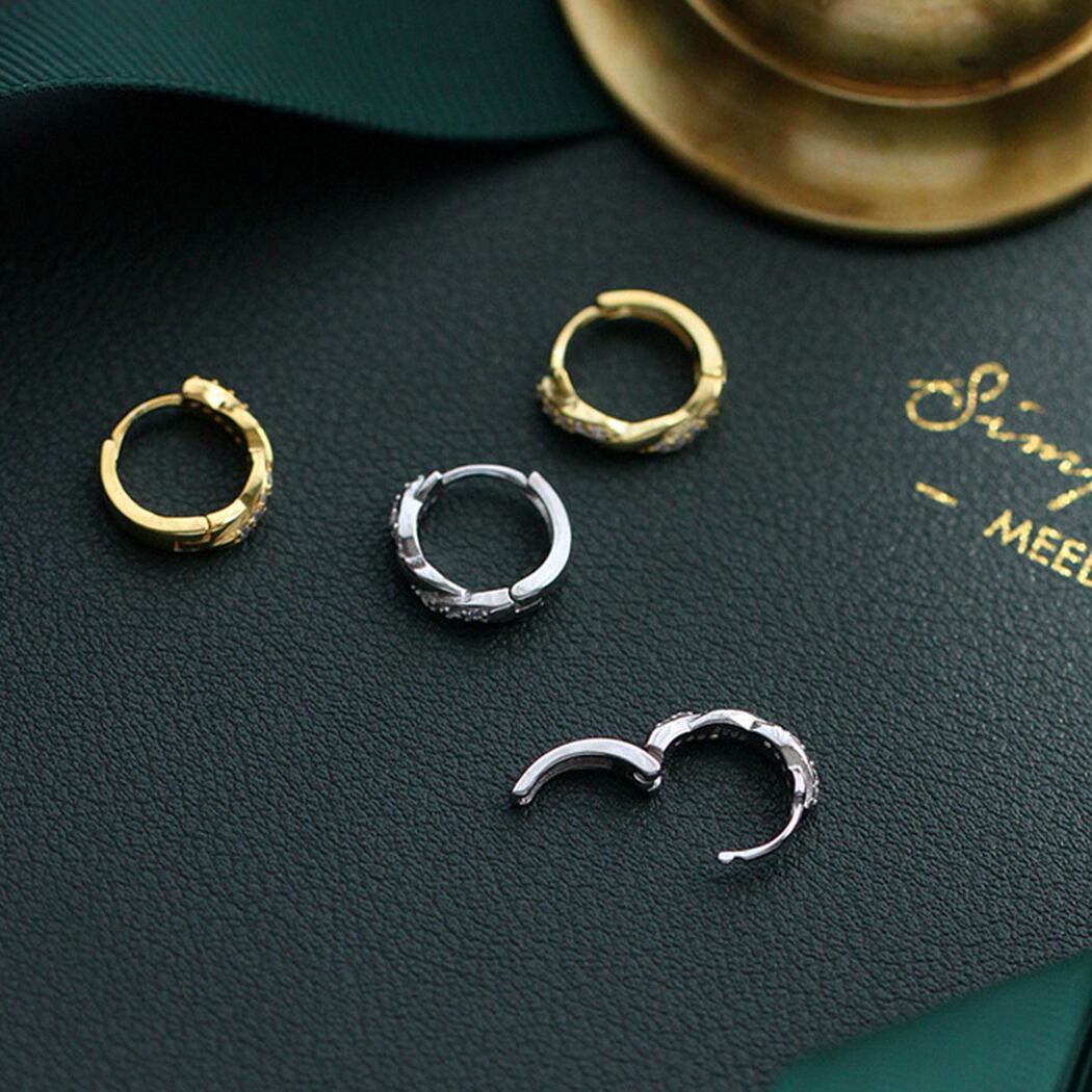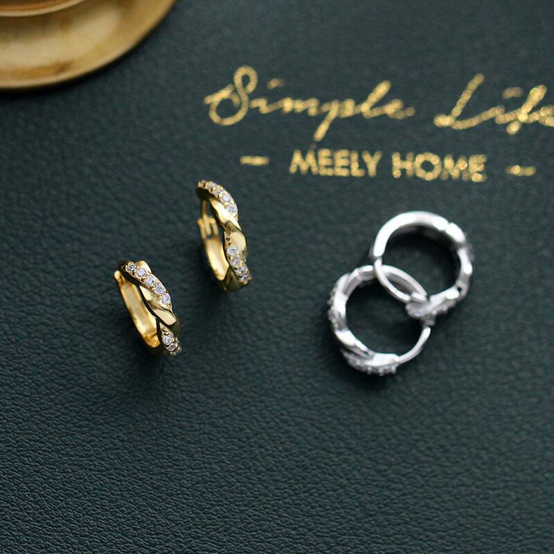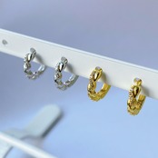 ストーンの輝きとねじりデザインがおしゃれなフープピアスです。