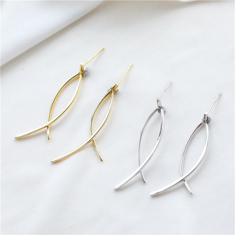 カーブライン ピアス ゴールド シルバー レディース 揺れる 長い アクセサリー 両耳