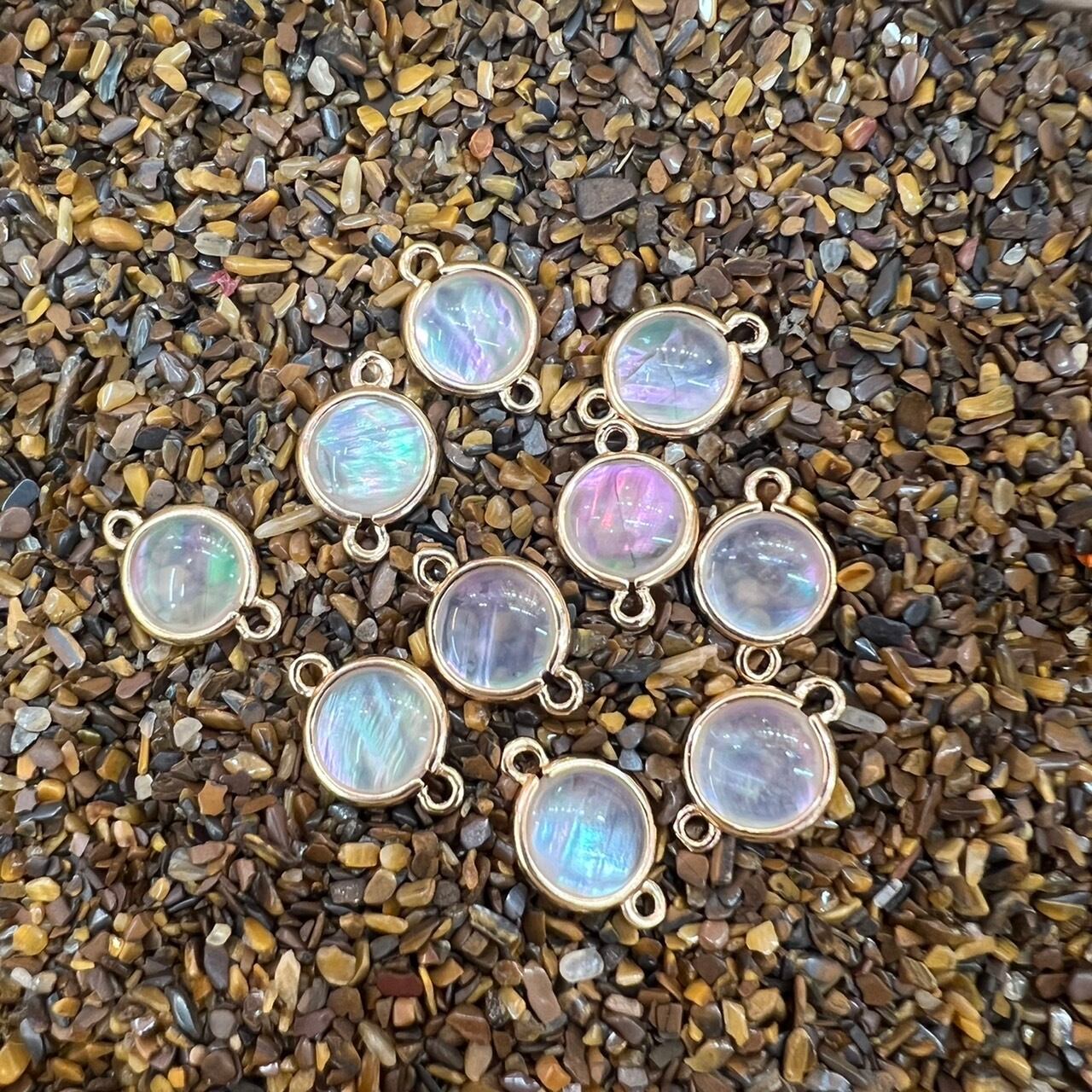 天然白蝶貝 パーツ チャーム カン付き ゴールド ホワイト ラウンド アクセサリーパーツ ハンドメイド シェル 両カン付き 2個
